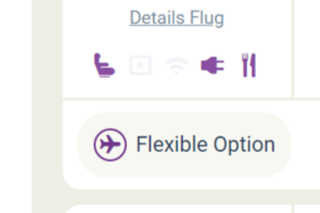 Die Flexiblen Tickets werden durch ein Symbol bei der Suchanfrage markiert, damit Sie gleich sehen, dass es die Möglichkeit gibt bei diesem Flug keine Änderungsgebühr für die Flugdaten zahlen zu müssen, siehe Abschnitt Ticket Pakete.
