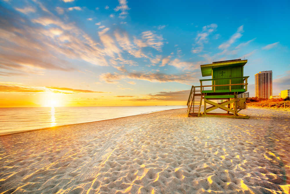 Miami, die Stadt in Florida, die durch Will Smiths Song und zahlreiche Serien wie "Miami Vice" berühmt wurde, liegt an der Biscayne Bay, die zum Atlantischen Ozean gehört, und ist ein perfektes Ziel für einen Strandurlaub. Der bekannteste Strand in Miami ist sicherlich South Beach, dessen Charme maßgeblich durch die Art Deco-Gebäude entlang der Küste geprägt wird. Hier können Sie morgens an einem der kostenlosen Yoga-Kurse direkt am Meer teilnehmen. Ein Highlight ist der Leuchtturm an der Südspitze von South Beach, dessen Besuch sich ebenfalls lohnt.